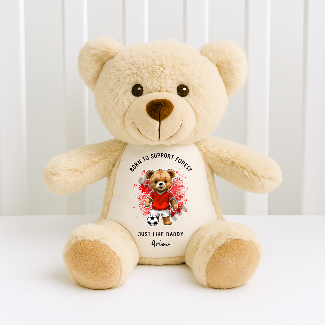 Celebrate your little one’s first team pride with our inspired Nottingham Forest baby range — lovingly designed for the tiniest Fans! This exclusive collection features personalised bibs, vests, rompers, and teddy bears, making the perfect gift for new arrivals, baby showers, or proud families. Our soft, 100% cotton vests and rompers are made for comfort and style. Each piece can be personalised with your baby’s name , paired with a bold Forest Teddy Bear design. Whether for everyday wear or matchday photo ops, your little fan will look adorable while staying comfy.