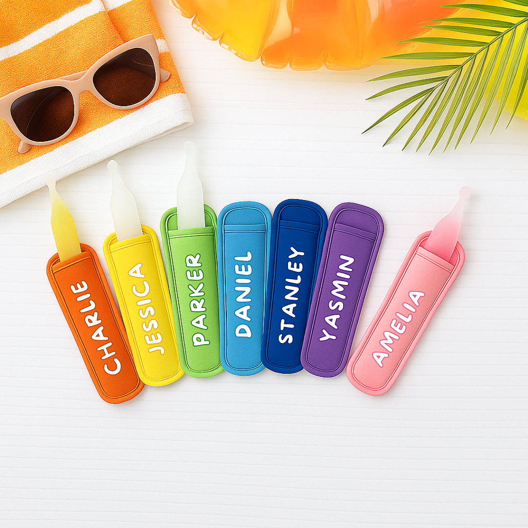 No more frozen fingers! Our Personalised ice popsicle holders are the perfect accessory for enjoying your favourite frosty treats. Made from durable, insulating neoprene, these sleeves keep popsicles colder for longer, preventing drips and making them easy for little (and big!) hands to hold. Customise each holder with a name and your choice of colour, making them ideal for parties, summer days, or just a special everyday treat. Say goodbye to sticky messes and hello to personalised cool! Measures 18 x 6cm