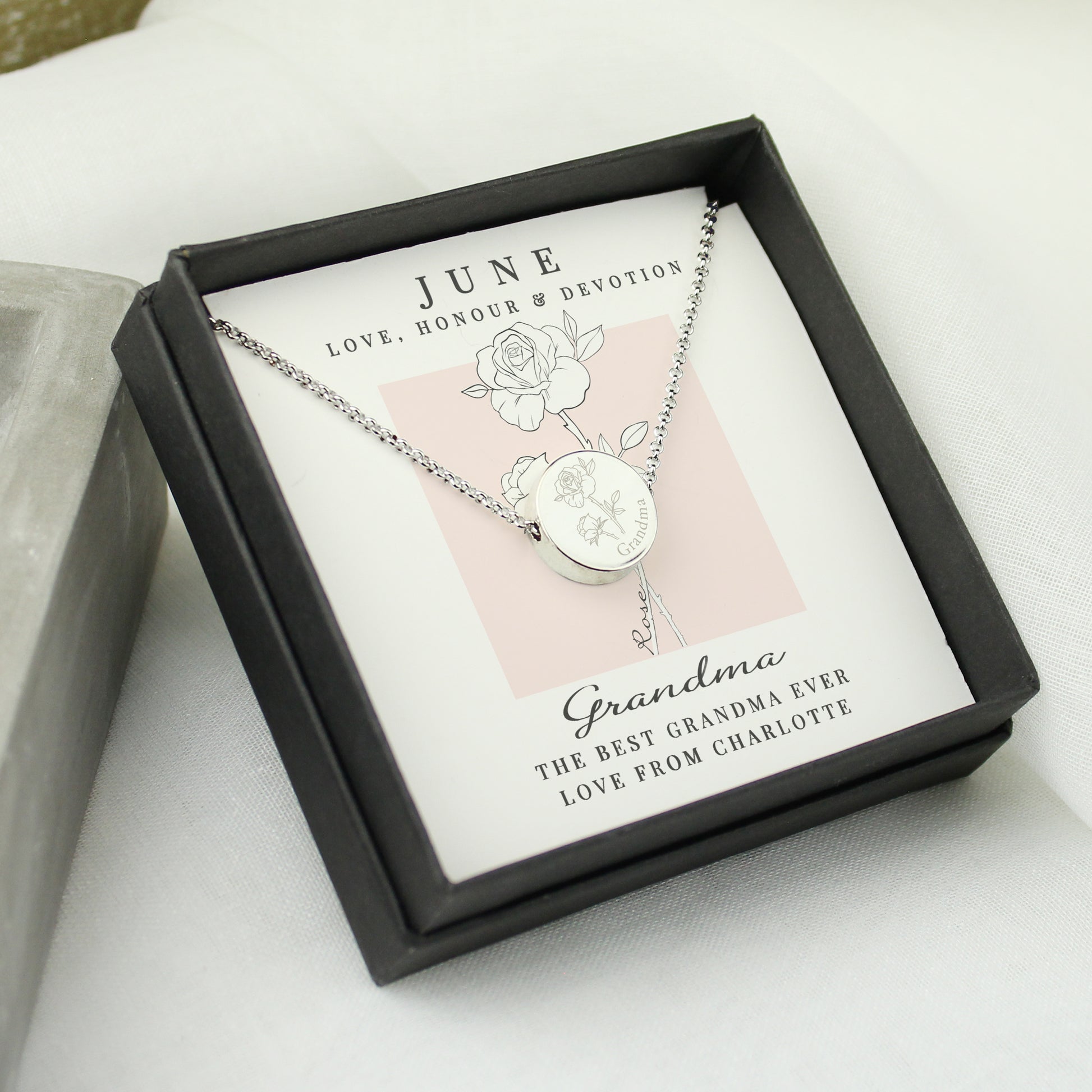 This Personalised Birth Flower Necklace is a thoughtful and unique gift, perfect for celebrating a loved one or treating yourself. Each necklace is made from a mixture of brass and steel & comes engraved with the birth flower corresponding to your chosen birth month. This necklace is presented in a black gift box.