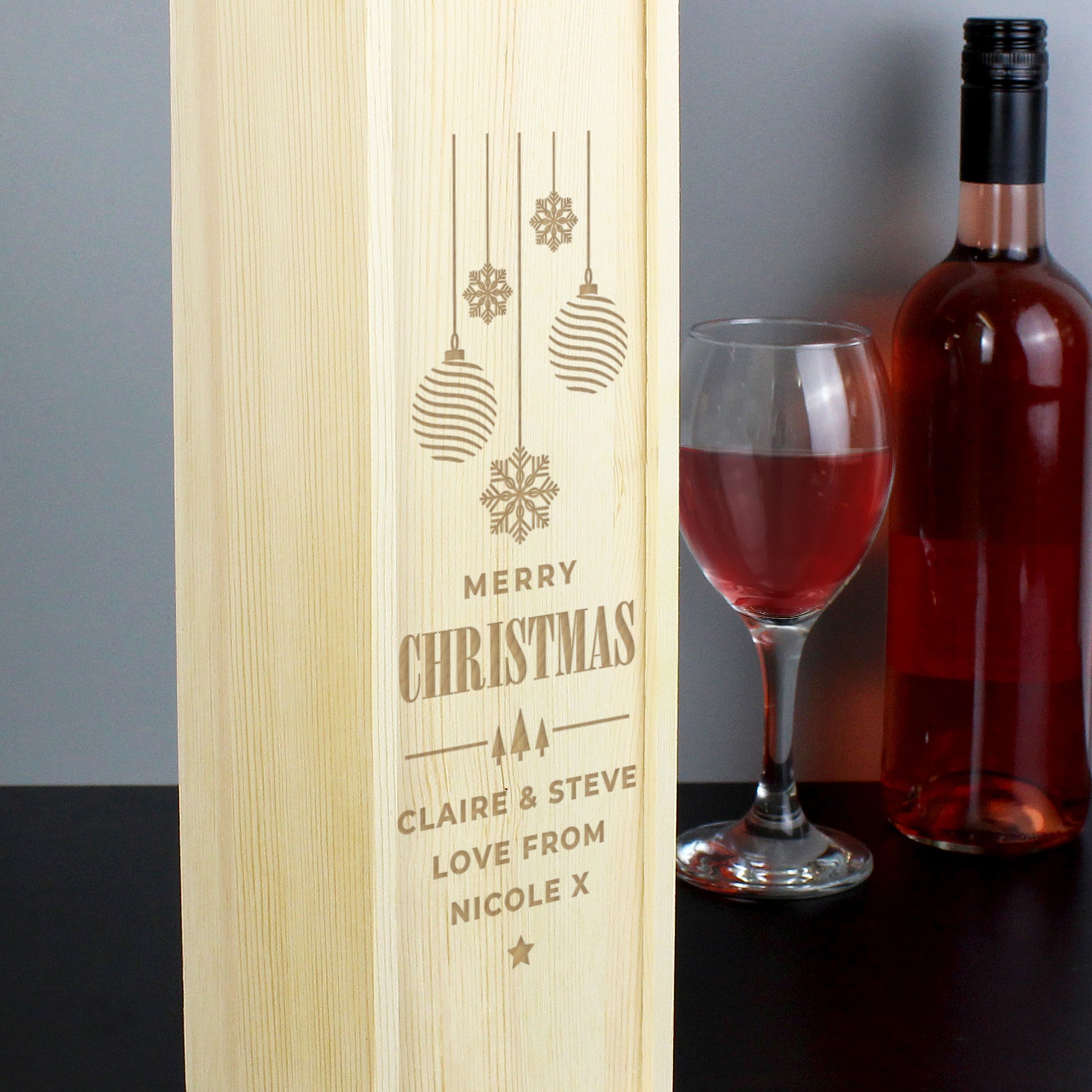 Our practical and stylish Christmas Wooden Wine Box is an ideal way to present their favourite bottle of wine this Christmas. The box comes with a sliding front and a string handle for safe storage and carrying. Each presentation box will be unique due to the natural grain of the wood and may contain some slight blemishes.