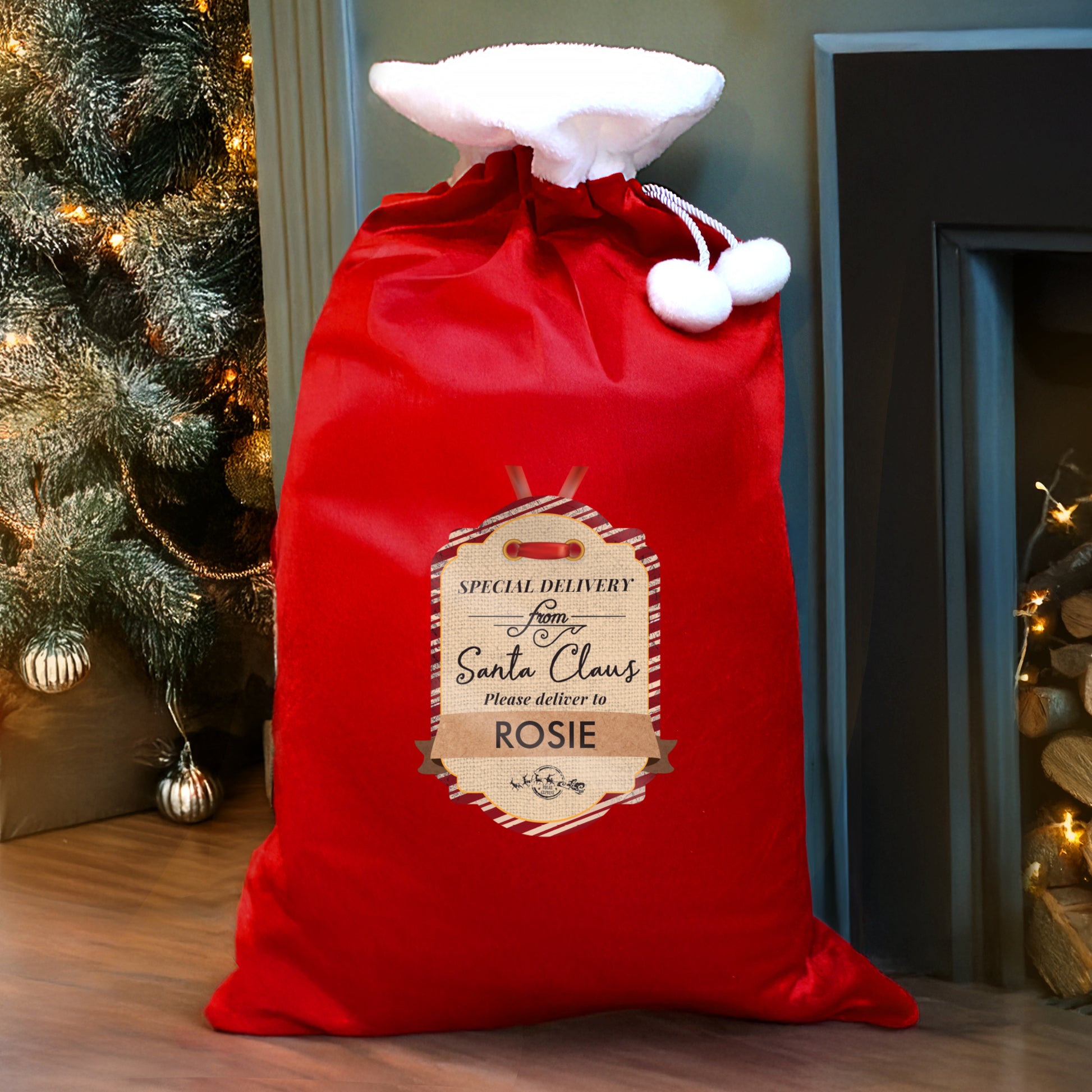 Our Personalised Special Delivery Luxury Sacks are perfect for filling with Christmas treats! It can be used year on year to create a truly festive feel and comes personalised with a name of your choice. This sack is made from a high quality fleece and comes supplied with a drawstring. Sponge clean only.